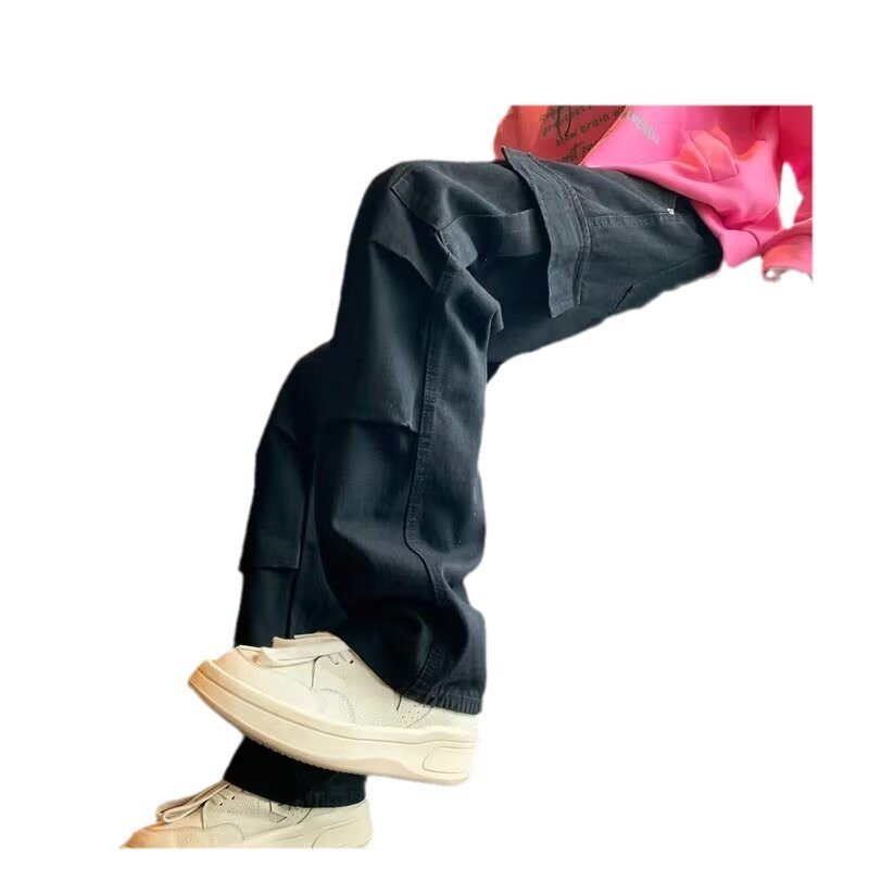 Loose Straight Heavy Stone Washed Retro Casual Denim Trousers